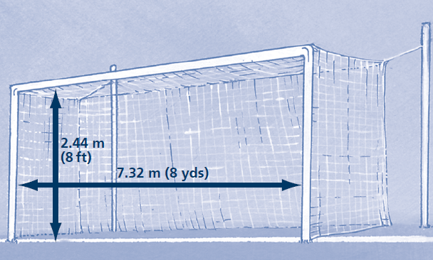 兩根球門柱和橫梁具有不超過12厘米(5英寸)的相同的寬度和厚度。球門線與球門柱和橫梁的寬度是相同的。球門網可以系在球門及球門后面的地上,并要適當撐起以不影響守門員。