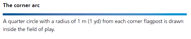 在比賽場地內,以每個角旗桿為圓心,畫一個半徑為1米(1碼)的四分之一圓。